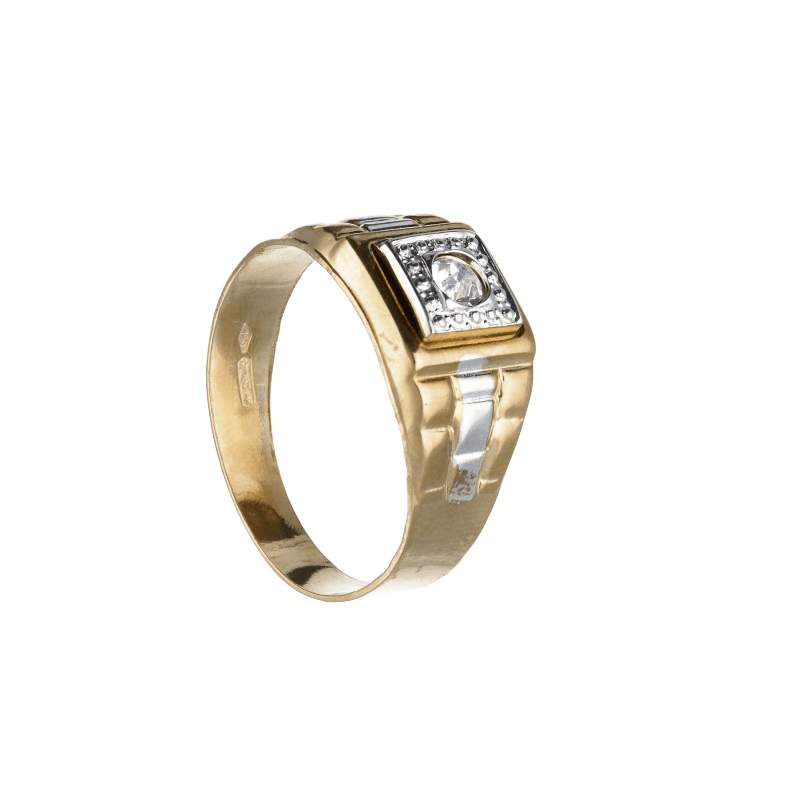 ANELLO B/G UOMO CON ZIRCONE